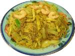 Pork, chicken, and shrimp w. thin rice noodles in curry.